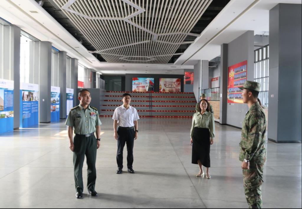 座谈结束后,在校长王晓波、副校长任广新及校武装部工作人员陪同下,郭勇部长一行实地考察了学校征兵工作站、国防教育长廊、退役军人服务站及 “退役军人之家” 等重要阵地。每到一处,郭勇部长都仔细询问工作细节,深入了解我校国防教育开展形式、征兵宣传成效、学生军训组织管理、军事类社团建设、双拥共建活动及退役军人服务保障等工作的具体情况。